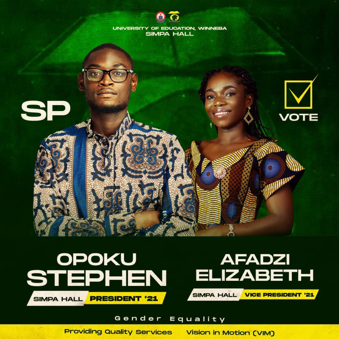 Above mentioned are the Five (5) reason why you should VOTE for Stephen Opoku (S.P) as Simpa Hall President and Afadzi Elizabeth as Simpa Hall Vice President.